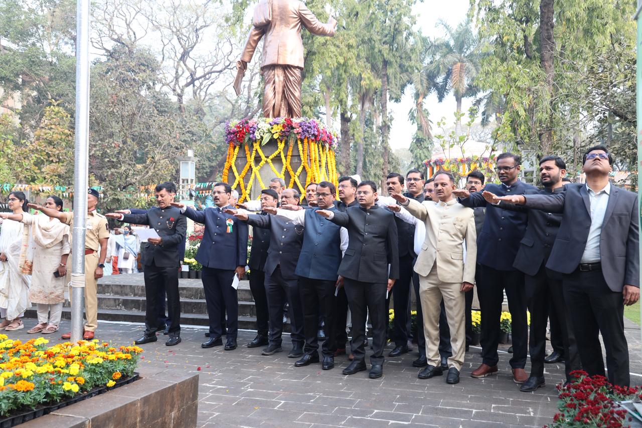 तसेच सकाळी ८.०५ वाजता मा. प्रशासक तथा महापालिका आयुक्त नवल किशोर राम यांचे शुभहस्ते ध्वजारोहण व ध्वजवंदन करण्यात आले व संविधानाच्या प्रास्ताविकाचे सामुहिक वाचन करण्यात आले.