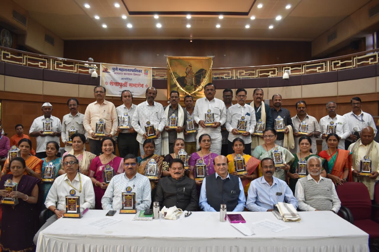 PMC Retired Employees – (The Karbhari News Service) -डिसेंबर, 2025 महिन्यात पुणे महापालिकेचे (Pune Municipal Corporation) 43 अधिकारी आणि कर्मचारी सेवानिवृत्त झाले. या कर्मचाऱ्यांसाठी महानगपालिका कामगार कल्याण विभागाच्या (PMC Labour Welfare Department) वतीने सेवापूर्ती समारंभ आयोजित करण्यात आला होता. (PMC Pune)